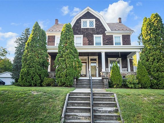 Discover classic charm in this stunning 4 BR, 1.5-bath twin home on highly desirable Columbia Ave in Palmerton. From the moment you arrive, the home’s impressive curb appeal captivates with its well-maintained landscaping and slight elevation off the road, offering both charm and privacy. The large covered front porch invites relaxation, while the balcony off the back provides a perfect spot for enjoying the view of the surrounding area. Practicality is also key with the shared horseshoe driveway and a shared detached 1C garage, ensuring ample parking and storage. Step inside to experience timeless elegance with stunning original wood accents throughout. The 1st floor features beautiful chestnut wood trim and a built-in corner cabinet in the DR, complemented by oak HW floors hidden beneath the carpet. The spacious layout includes a cozy LR, a formal DR, a functional kitchen, and a convenient half bath. As you move to the 2nd floor, you’ll find 3 generously sized BRs and a full bath, providing ample space for family and guests. The partially finished attic adds even more value, offering a 4th BR and additional storage space. This home is a perfect blend of classic charm and modern amenities, ready for you to put your personal touch on it. Slate roof being replaced week of 9/30! Updated electric! Embrace the opportunity to renew and customize this magnificent property to suit your style.