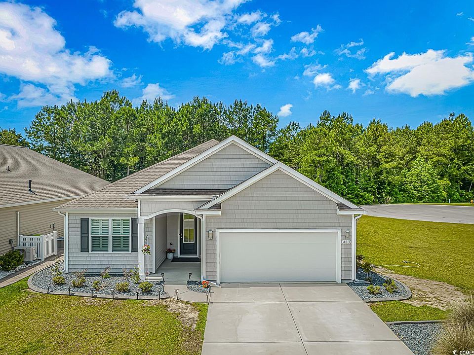 Minutes from North Myrtle Beach is this lovely home featuring 3BR 2Baths, Master Bath includes ensuite bath with double vanity and tile shower. This home has an open floor plan (DR Horton Eaton floor plan) featuring Quartz counter tops, and gas range. The extended patio features an outdoor kitchen with granite countertops, full sink, ice maker and grill. One of the guest bedrooms has a built in office space and Murphy Bed making the room multi purpose. The garage is fully heated and cooled with a mini split (This Sqft. not included in the 1733 heated sq footage of the home). There is a whole house water filtration system, 2 reverse osmosis systems one in each kitchen sinks, 6 foot privacy fence, an electric Sunsetter Awning on back porch with LED lights that will retract automatically in high winds and hard scape with color coordinating rock beds--no straw or mulch to upkeep. The back yard inside the fence is all Artificial turf making it ideal for pets and overall low maintenance. Lots of privacy with the 6 foot fence with 3 entry gates. The home is located in a cul-de-sac and has a wooded area in the rear for extra privacy. This is a natural gas community making the home very energy efficient. The community has a pool and clubhouse amenities all included as a part of your HOA dues. Located near North Myrtle Beach High School and within minutes of SeaCoast Hospital and easy access to Hwy 31. Lots of shopping, dining and entertainment nearby. The owners of the home are both licensed SC/NC Brokers - Co-list agent is also related to the sellers.