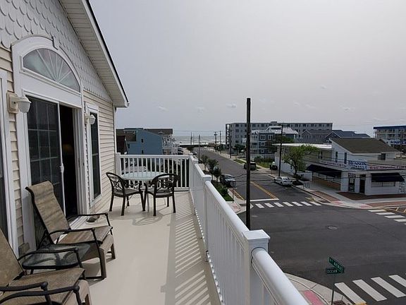 LOCATION, LOCATION, LOCATION! 3 Bedroom 2 Bath with Den top floor corner condo located across from Russo's in North Wildwood offering ocean views from your deck and nearly every east-facing window. First time offered since being built this unit is a rental champion and has been for over 14 years! Amenities include a full kitchen, spacious living room with vaulted ceiling, expansive deck and shared garage for 2 cars with private owner's storage. Come on through today before it's gone! Seller has completed repainting but is offering a flooring credit due to delays in carpet replacement. Den is used as a 4th Bedroom.