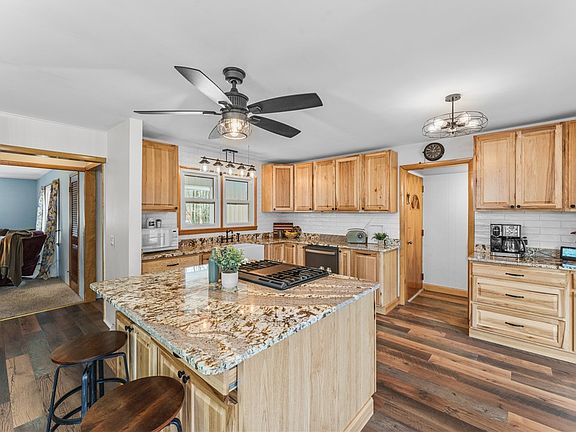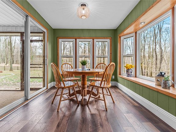 Your own private retreat awaits here, nestled within 2.68 acres of wooded splendor! As you make your approach from the brick-lined driveway, this ranch-style home’s charming stone and sided exterior beckons you to discover the warm and welcoming living space that awaits within. Step inside as sunlight dances through the newer windows, illuminating an interior adorned with tasteful updates throughout. Prepared to be enchanted by the heart of the home- a stunning, modern kitchen. Centered around a generous island, hickory cabinetry, stainless appliances, and high-end granite counters set the stage for your culinary creations. Savor your meals in the company of nature's beauty as you dine in the kitchen dinette area or the formal dining room, both offering openness to the kitchen and breathtaking views of the scenic wooded backdrop.