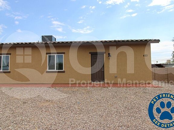 ** $300 CREDITED TOWARD MOVE IN COSTS! ** This stunning 1,079 sq. ft. duplex unit features 3 bedrooms and 2 bathrooms, offering a desirable single-story floor plan with modern features throughout. The charming kitchen includes all appliances and opens to a spacious living and dining area. Each of the 3 generously sized bedrooms offers ample closet space. Both bathrooms boast modern vanities, lighting, and fixtures. Additional features include ceiling fans and an included washer and dryer. Enjoy low-maintenance landscaping and ample parking. Conveniently located in Tucson with no HOA and easy access to I-10. Washer, dryer, and fridge included. APPLICATION: $55 Application Fee Per Applicant 18 years or older (Nonrefundable). Please allow 24 to 72 business hours to process the Application once all required documents are submitted by all applicants 18 years or older. LEASE LENGTH: 12-month Minimum (Longer Lease Term may be negotiable) INITIAL MOVE-IN COSTS: Upon application approval, a nonrefundable Holding Retainer will be required to secure the property and will be applied towards the move-in costs. The Holding Retainer amount is determined by the type of Security Deposit option you choose. Applicants can choose between a traditional Security Deposit which may be 1 times the monthly rent but not greater than 1.5 times the monthly rent (75% refundable) or a Security Deposit Alternative program (only available on long-term leases of 12 months or more). A $250 one-time lease preparation fee as well as the first month's rent is due prior to move-in. Pet Policy: Dogs and Cats Allowed with the following exceptions: Small pets will be considered based on approval (11-25 lbs) If the Applicant has a Pet, $150 Non-Refundable Pet Fee per pet. RECURRING MONTHLY COSTS: There is a 2.9% Rental Tax/Administration Fee. (AZ Dept of Revenue Transaction Privilege Tax ends December 31, 2024) If the Applicant has a Pet, a $35 Pet Rent Per Pet (Does Not Apply to Assistive Animals). All On Q Property Management Residents are enrolled in the Resident Benefits Package for $39 or $49 with pets, which includes liability insurance, credit building to help boost the resident's credit score with timely rent payments, move-in concierge service making utility connection and home service setup a breeze during your move-in, Renter to Buyer program, and much more! *Other terms and conditions may apply. All information including advertised rent and other charges are deemed reliable but not guaranteed and is subject to change.