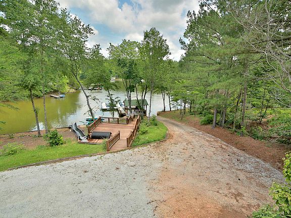Best Value on the Lake. Quiet Large Cove one minute from the Big Water Gorgeous, recently remodeled 4 bedroom, 4 bathroom home, that is situated on two lots. Over 2 acres, with 190 feet of shoreline. Open floor plan, with cozy stone, woodburning fireplace in the great room, dining room as well as plenty of seating in the kitchen. There are two great masters, both on the main level, with their own bathrooms. Terrace level offers another large great room, bedroom, awesome bunk room, and full bath. Home has a new HVAC system. Outside there is a large detached garage, RV hookup complete with power, water and septic in place. Covered deck overlooking the water, as well as an open deck and covered dock. Its an easy walk to the water where you find covered gazebo, Two boat lifts, and a waterslide for endless summer fun! And don't forget this property has its own boat ramp.