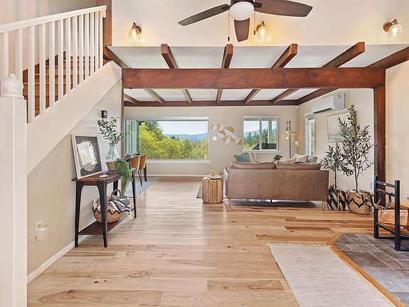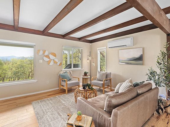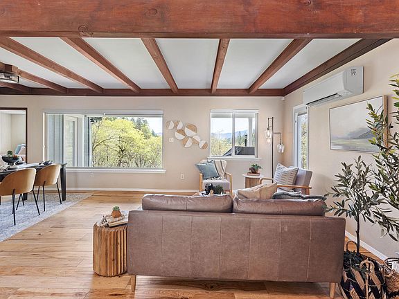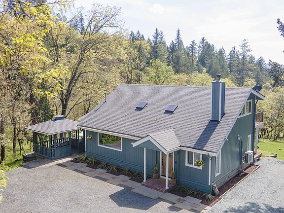 Discover your sanctuary at 433 Hawksdale Drive, Grants Pass. This renovated Northwest home sits on 4.5 acres with stunning valley views. Features include a primary suite with deck access, a modern kitchen with stainless appliances, and a picture window to nature. Upstairs, two bedrooms, a bathroom and a balcony await. Outside, enjoy a 3-car garage/shop, a garden, and three storage buildings—one perfect as an office or hobby room. The many upgrades make this home move in ready so you can relax and enjoy! Don't miss out on this blend of luxury and tranquility. Call for a tour today!