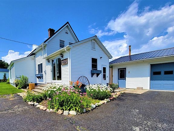 This two bedroom farmhouse is nestled at the base of Haystack Mountain, with a large fenced in backyard, two car garage, and separate storage shed. The house has recently remodeled bathrooms, a mudroom with lots of built in storage, laundry on the first floor and two ample sized bedrooms. The eat-in kitchen offers views to the front and back of the house, while the living room is bright and sunny. The primary bedroom is on the first floor with a built in office area. Upstairs is a second large bedroom, a brand new half bath, and bonus space for office, craft, or hobby area. Your choice of oil or wood heat, or a combination of both with two furnaces. Haystack Mountain is right next door, and it's just a short drive to the North Maine Woods. Outdoor recreation opportunities are right around the corner!