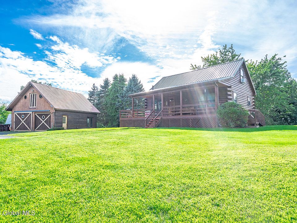 Incredible 2 bedroom + loft, 2 full bathroom Western Red Cedar log home on 5 acres of gorgeous views!!! Hard wood floors throughout the home. Finished basement with family room/rec room. Oversized heated garage. Wrap around porch that was freshly painted. Radiant heat in the kitchen and bathroom. Easy commute to Saratoga, Troy and Albany! A true gem!!