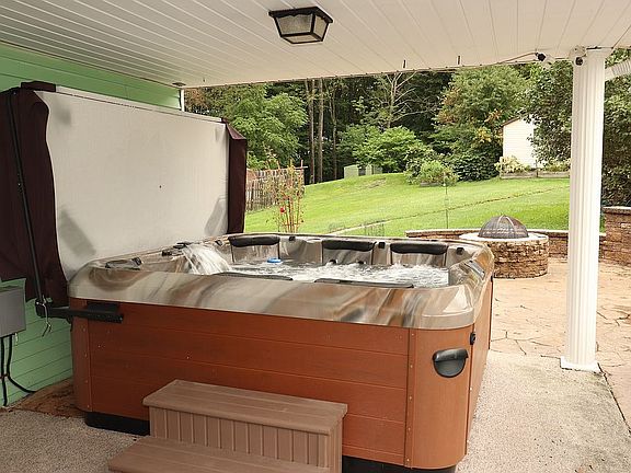 Two story with walk-up attic, eat in kitchen, gas fireplace, living room, 4 bedroom or 3 bedroom and a family room, 2 full bathrooms, hot tub included, 18X12 Shed, large patio with lighting.