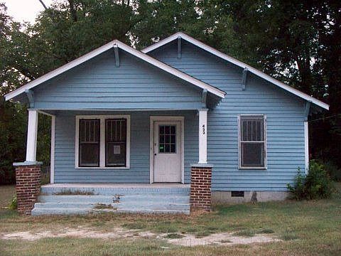 Exterior Features: Light Blue home with white trim accented with brick located on large mature treed lot with grassed yard and landscaping plants around house. Home is adorned with large brick chimney atop asphalt signal roof that has no signs of leakage in home and is in modest condition; appears to have some aging shingles - yet with the maintenance and roof cleaning have few years left in their service life. Soffits are open fascia with exposed wood in good repair however could use fresh coat of paint and possible caulking of soffit rafters. Eves are open with roof overhang to edge of soffits rafters so no exposed wood thus no maintenance required concerning eves which is nice feature of this open fascia design. Exterior composition is wood frame construction with wood slat board covering in good condition that is painted in nice light blue color; however could use nice thick coat for maintenance and to maintain homes good exterior for many years. Windows of home are wood frame box windows with metal swivel hook locks that need repair in addition to re-screening some windows need complete overhaul or replacement; however the basic frames of windows are intact and good for refurbishment if so desired. Foundation is raised concrete block appears solid with no signs apparent of shifting or cracking that was noted on site. Covered front porch has brick foundation and concrete slab poured decking that has concrete steps leading to its threshold; this is centerpiece of front of house and has good curb appeal let alone providing area to relax and enjoy neighborhood. Home is 3/5 partial fenced mainly from shared adjacent lots providing 4 ft chain link barrier to the property. Driveway is dirt which could be easily updated with concrete or gravel if so desired for easy upgrade to property value. Interior Features: Living room is entered from front porch threshold and provides good view though its nicely placed windows that are four in number. Fireplace is block up yet cou