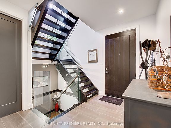 Discover this modern, upscale townhome nestled in a quiet Oakridge/Riverside enclave of just nine exclusive residences where privacy meets refined design. Residents enjoy access to a private pool area, adding a touch of resort-style living right at home. Step inside to find 9-foot ceilings, 8-foot doors, and wide-plank flooring, creating a bright, open, and elevated atmosphere. The kitchen pairs warm wood-toned cabinetry with granite counters and Jenn-Air stainless steel appliances, offering a perfect blend of function and style. A striking feature wall separates the living room, where sliding glass doors lead to a peaceful private deck surrounded by mature greenery. Upstairs, a floating wood-and-glass staircase leads to the primary suite complete with a make-up vanity nook, walk-in closet, and a luxurious ensuite bathroom. Step through French doors to your own balcony retreat, offering serene treetop views. The upper hallway adds space for a desk or reading area, while the second bedroom features its own ensuite and nearby second-floor laundry for convenience. The finished lower level expands your living space with a cozy family room and fireplace, plus potential to turn the open den back to a third bedroom. There is also a full bathroom ideal for guests or a home office. With parking for three vehicles, including a single insulated garage with inside entry, this property delivers comfort and practicality in equal measure. Located within the Oakridge Secondary School catchment, this is an exceptional opportunity to own a contemporary home in one of London's most desirable neighbourhoods.