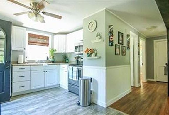 - Kit Dscrp: Main Level, Ceiling Fan(s), Flooring - Laminate, Chair Rail, Wainscoting