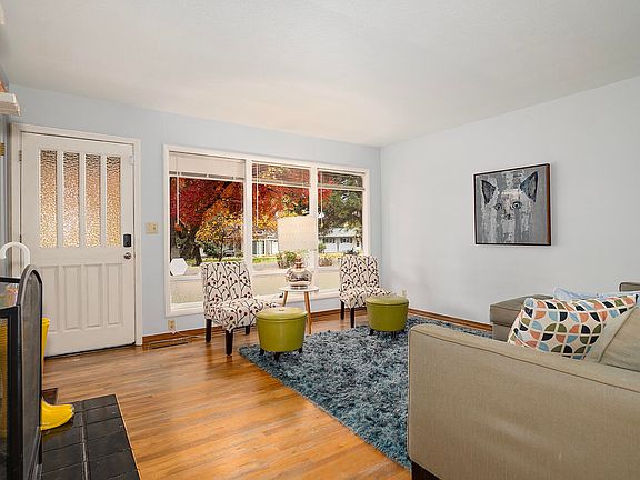 Enjoy this timeless, Mid-Century Modern home, in the heart of Old East Medford. With two inviting living spaces, this 3-bedroom, 2-bathroom home offers modern living while preserving its retro charm. The front living captures the stunning views of the fall leaves, enhanced by a cozy gas fireplace and the original oak hardwood floors that flow throughout most of the home. The retro-inspired spare bath adds to the authentic charm. The kitchen has a breakfast nook, abundant counter space and tiled backsplash that goes with the home's era along with a barn door slider leading to the back room. The back living room is perfect space for relaxation and has a dining room for gatherings. The expansive backyard covers most of the .3-acre lot. Enjoy outdoor entertaining on the large patio and retreat to the separate deck with added privacy. Additional highlights include an RV parking area while near local parks and schools. Don't miss the chance to own this delightful Mid-Century Modern home!