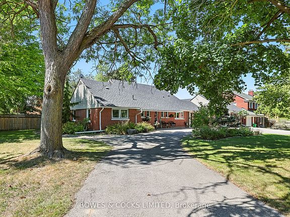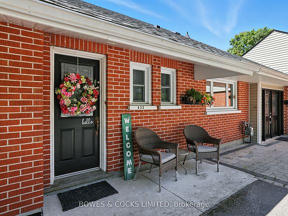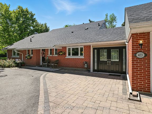 Welcome to 433 Manorhill Avenue. This expansive, solid-brick home is set on a double-wide corner lot with mature trees, offering a serene, country-like feel in Peterborough's highly desirable Old West End. The main floor welcomes you with comfort and elegance, featuring two bedrooms, a full bathroom, a formal living and dining room, an updated kitchen and a lovely sunroom. With engineered hardwood floors throughout, a cozy brick fireplace, and large windows overlooking the pool and gardens, creating a perfect space to relax. Upstairs, you'll find two additional spacious bedrooms and another full bathroom. The lower level offers excellent potential for multigenerational living or guest accommodations, complete with its own separate entrance, a bedroom, kitchenette, bathroom, and a cozy living room with a welcoming brick fireplace. The fully fenced backyard is a private retreat, professionally landscaped with raised garden beds, perennial flower beds, and interlocking stone surrounding the large inground pool. Multiple gazebos, a hot tub, and generous patio space provide the perfect setting for entertaining or unwinding. The oversized attached two-car garage includes a workshop and a loft designed as a mancave-complete with a pool table and lounge space. Ideally located within walking distance to Peterborough Regional Health Centre, shopping, schools, and amenities, this home truly offers it all: space, character, privacy and a lifestyle you'll love.