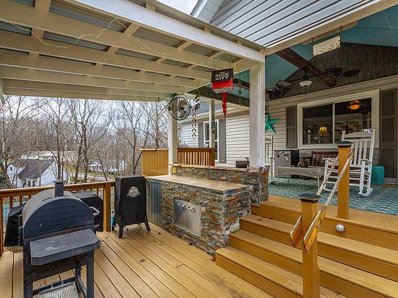 Mostly one level, completely updated home with amazing outdoor entertaining space in convenient location! The backyard is a dream, but you'll love the home as soon as you walk in the front door and see the hardwood floors, updated kitchen, open floor plan and gas fireplace. The master suite features hardwood floors, a tray ceiling, walk-in closet, double vanity, jetted tub and separate shower. The hardwood floors continue into the two secondary bedrooms also on the main level, along with a second full bathroom. Off of the garage you'll find a laundry room and third full bathroom that can be used with the 4th bedroom/bonus room that's upstairs. Step outside from the living room to an outdoor paradise in full view from the upper covered patio. Multiple deck spaces lead you to a full tiki bar with multiple TVs overlooking the swimming pool. The double lot is surrounded by woods, providing privacy for all of your outdoor entertaining. There is also a partial basement area that's finished and accessed from the lower patio, providing tons of storage or a second bonus area with a half bathroom (owners currently use it as a music room). A lower driveway provides storage for your RV, complete with hookups! All of this located just minutes from the state line with tons of dining, shopping, entertainment and healthcare options in East Brainerd while zoned for award winning Catoosa County schools!