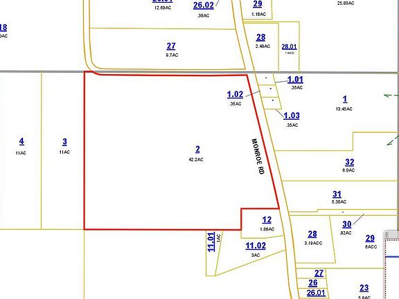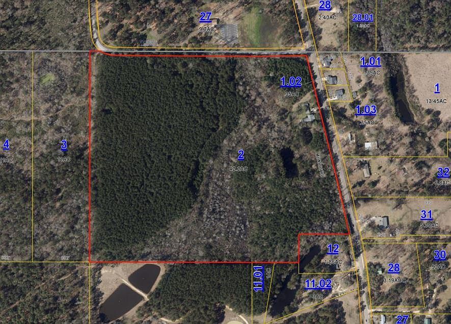 LOOKING FOR LAND? 44.12 acres recently surveyed. Heavily wooded property with some gently rolling areas and a pond. Several great building sites. Located just off Evelyn Gandy Parkway across from Monroe Rd Community Center and Park. No value is given for house on property.