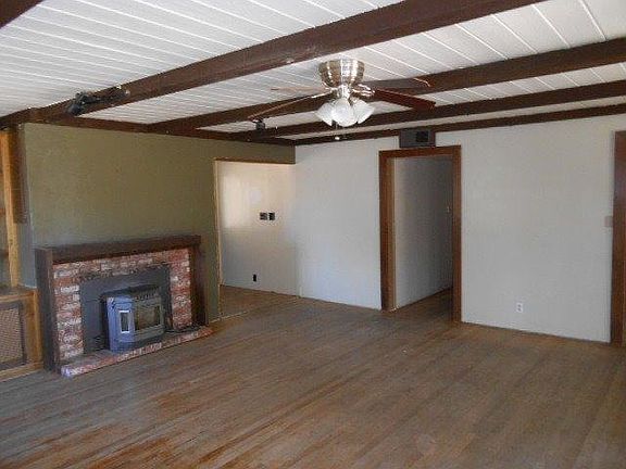 HUD Home. 3 bedroom, 2 bath house has tons of potential. Rooms are nice and large, lot is absolutely huge. There is a matching single room outbuilding in the backyard. Kitchen is modernized with granite counters, stainless and black appliances, tile floors and a beautiful built-in hutch. Living room is oversized with open beam ceiling and wood burning stove. Bonus room next to the garage.