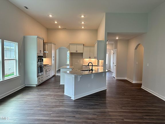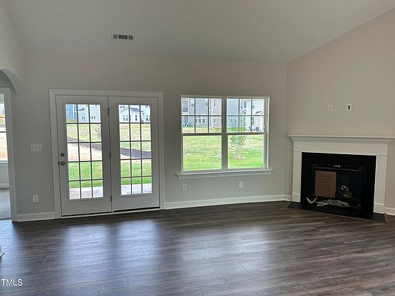 Highly sought after ranch floorplan in Cornwallis Landing!! Primary bathroom with HUGE oversized walk in shower with tile surround and tile shower floor. Dual sinks in primary bath with water closet and awesome closet. exterior door in primary bedroom leads to 20x9 covered porch!! Vaulted ceilings in great room featuring a fireplace, kitchen, and eat in space! Large flush countertop on kitchen peninsula perfect for barstools! The kitchen is open to the family room area which makes this plan perfect for entertaining! Two generous sized bedrooms, full bath, and laundry room. Formal Dining room with coffered ceiling!! Do not miss out on this true ranch floorplan in Cornwallis Landing!!