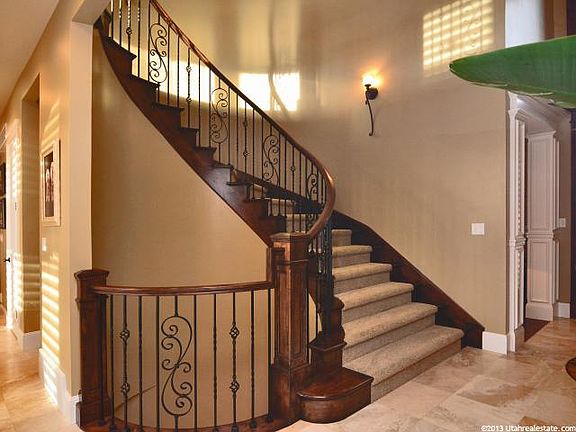 Interior features include a beautiful foyer, spiral staircase, architrave molding on all windows and doors, custom columns, custom grade finish, oil rubbed bronze hardware and faucets, and a French drain system. Enjoy a jetted tub and double sinks in the master bathroom, and a steam shower in the basement with extra tall ceilings! The windows are tinted for efficiency and have 4" plantation shutters. The home has cat 5 wiring for optimal internet connection, surround sound on main floor and in basement, and built-in entertainment centers. The gorgeous kitchen has double ovens with a warming drawer, a large butler pantry, and a secondary pantry. The 1,063 square foot garage has nice finishings! All information to be verified by buyer.