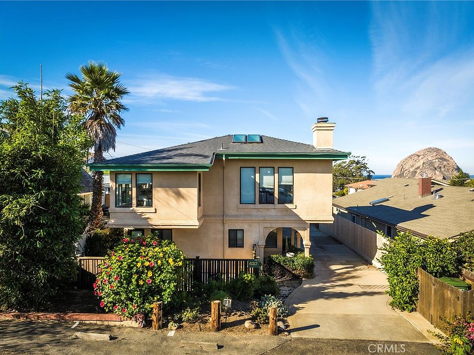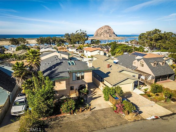 Spacious downtown Morro Bay home with inspiring Rock & Ocean Views! Incredible upgrades throughout including a new modern kitchen design. Over 2000 sqft of open and flowing living space with vaulted ceilings and beaming skylights. Everyone loves a new kitchen, right! Well, this one was completed in 2022 with all the bells and whistles, quartzite countertops, chef's dream Thermador gas range and much more! The home offers a convenient floor plan to maximize the view, and living with main living upstairs. The Master is large with an ensuite stylishly renovated bathroom. The main area is very spacious with dining area on one side and living room with fireplace. Down the hall offers and escape with wet bar lounge and leads to the deck to catch the sunset. Downstairs are the additional bedrooms and standard 2 car garage. A perfect fenced patio has been created to enjoy the fresh coastal environment. This is a large two story building that shares a common wall and driveway. This listing is for the front home. This is NOT a condo! There are CCR's but NO HOA or Monthly dues. The entire roof was completed in 2016. Location, Location, Location; You are just blocks away to the stairs to the waterfront or dinner and a movie in town.