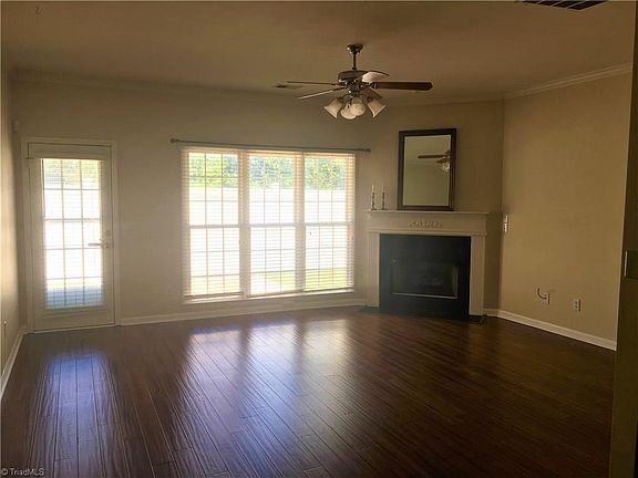 Modern town home near shopping, restaurants, NC 68 & I-74. Spacious OPEN floor plan. Private back yard w/ fence & NEW patio. Engineered hardwood floors in living areas and master. Tiled bathroom floors. Walk in closet, upgraded tile shower & double vanity in master. Lots of closet space, 9' smooth ceilings & crown moldings. Gas fireplace w/ wall switch. NEW heat, ac & water heater. Range, refrigerator, NEW dishwasher, washer and dryer included. Two car garage with storage. No step entry.