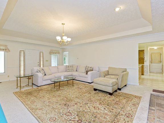 Look at this deal~ one level all brick home sitting on 2+ acres~ 2 car attached garage AND 1 1/2 car detached~Trey ceiling in living room with fireplace~ Large eat-in kitchen with stainless appliances~ Bay window in master bedroom~breathtaking view of farmland in rear of home~covered front and back porch~plenty of extra parking~washer/dryer 6 months old