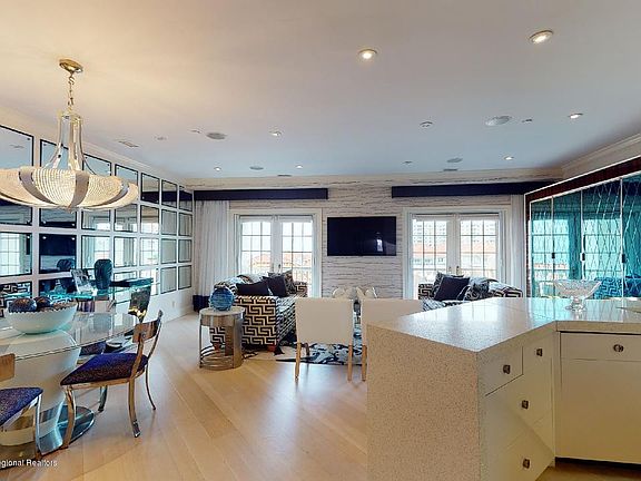 View, Decor, Layout, this unit has it all! Nearly 10 years since a duplex model has become available at Renaissance. Stunning unobstructed views from every room with spacious balconies on two levels. This rare home is loaded with custom built-ins, rich imported tiles, unique wall coverings, one-of-a-kind light fixtures and finest finishes. This is a 2-story layout, with 3 BR, 3 full baths, custom kitchen, 9' ceilings on lower level with vaulted ceilings on upper level. Experience sunrise or sunset from your balconies. Located in Renaissance on the Ocean, private gated community in Long Branch's West End, private beach access, beach attendants with furniture, heated pool & spa, club house with gym, HarTru tennis, walk to shops, restaurants, minutes to NY ferries & trains and Pier Village.