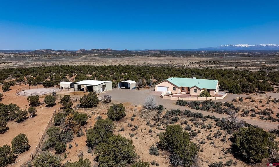 Horse Lover's Dream with Stunning La Plata Mountain Views! Enjoy the picturesque views of the La Plata Mountains right from your living room in this serene 3-bedroom, 2-bath ranch- style home on over 21 private acres. If you're seeking peace, privacy, and wide-open space this is the one! Relax, Unwind, and Enjoy the Views! Step out onto your beautiful back patio and soak in the views from your private hot tub perfect for relaxing evenings or entertaining guests. Inside, the spacious kitchen is a cook's dream, featuring a center island, custom cabinetry, and plenty of room to create and gather. The microwave & range/oven are brand new & the dishwasher is only a year old. The open concept living space boasts stunning, updated flooring and a welcoming atmosphere, ideal for both everyday living and special occasions. The master bedroom features a separate office space (could easily be used as a 4th bedroom), large walk-in closet & beautiful bathroom with jetted tub! This home is the perfect blend of comfort, style, and functionality! Fully set up for horses, this property features a well-equipped barn with a workbench, cabinets, 3 saddle racks, wash bay with rubber mats, and ample hay storage. You'll also find corrals, horse panels, a paddock, and a round pen - everything you need to care for your animals in comfort and style. Extras include additional fencing, flagstone, concrete blocks, and a dog run. This property is turn-key and ready for your ranching lifestyle! Measurements are approximate, Buyers to verify.