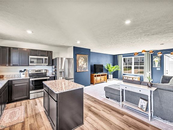 Newly built 3-bedroom, 2.5-bath Colonial with lots of upgrades located on a premium property in the Encore Estates at Heisley Park community, in the Riverside School District. Conveniently located near OH-2, OH-44, parks, golf courses, shopping, restaurants, and many other local attractions. This move-in ready home offers open-concept living, with an upgraded eat-in kitchen featuring stainless steel appliances, granite countertops, and a center island. A full basement with rough-in plumbing for a full bath offers lots of potential for future living space. The primary suite features a walk-in closet and an en-suite bath with double vanity. A convenient 2nd-floor laundry room and attached 2-car garage round out the tour. . INCLUDED are ALL kitchen appliances along with washer/dryer.
