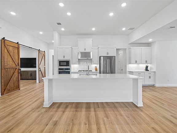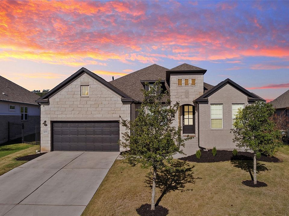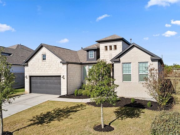 Beautifully designed Taylor Morrison Jade floor plan offers the perfect blend of luxury, comfort, and functionality in the highly sought-after Parten Ranch community. This expansive one-story home features 4 bedrooms, 3 full bathrooms, a dedicated office, dining room, and a versatile flex space, ideal for a growing family, guests, or work-from-home living. The open-concept gathering room flows seamlessly into the gourmet kitchen, creating a welcoming space for entertaining and everyday living. Raised ceilings in the foyer, kitchen, and gathering room enhance the home’s light-filled, airy feel. The private primary suite is a true retreat, highlighted by a spa-like bathroom with floor-to-ceiling tile and a large walk-in shower. Walk-in closets in every bedroom provide exceptional storage, while the thoughtfully designed owner’s entry offers a convenient drop zone for daily essentials. Additional standout features include a fully completed laundry room with custom cabinetry, farmhouse sink, and hanging space, custom sliding barn doors for the flex room, and a 3-car tandem garage with an oversized alcove—perfect for extra storage or a hobby workspace. Backing to a peaceful greenbelt, this home offers privacy and scenic Hill Country views. Residents of Parten Ranch enjoy exemplary DSISD schools, a resort-style pool with lap lanes, playscape, pavilion, and miles of walking trails. Ideally located just 30 minutes to downtown Austin and 35 minutes to ABIA, this home delivers the best of serene suburban living with easy city access. This is Hill Country living at its finest—modern, spacious, and move-in ready.