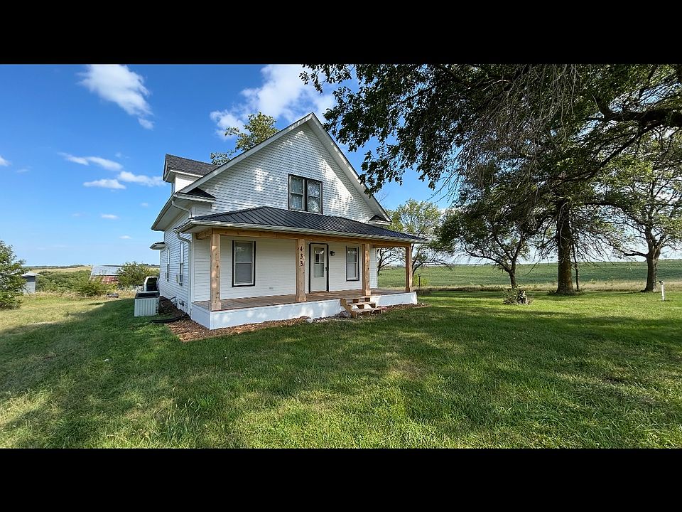 Newly renovated farmhouse on 3acres, 4 stall garage, 2 acre pasture land, main floor, master bedroom, and bathroom, two more bedrooms upstairs, half bath on main floor, open large basement with bathroom and laundry, propane, heat, window air conditioning units upstairs and downstairs, and large front porch. Renters responsible for utilities, including electric, water, propane, and trash, lawn care. First month , last month, and security deposit due upon signing. Pet deposit. No smoking.