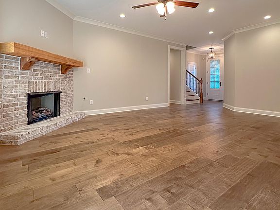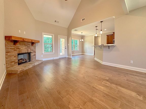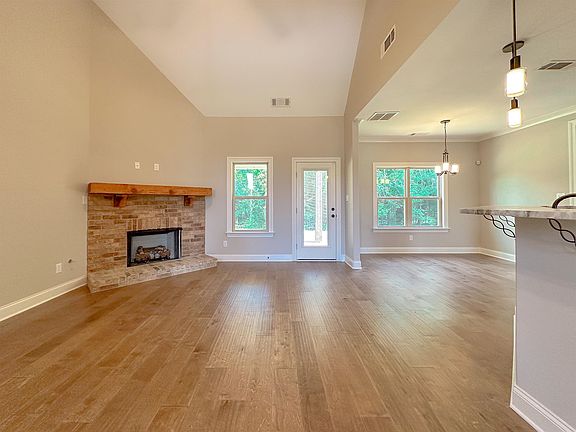 Now offering a $5,000 builder's bonus. This beautiful 3 bedroom/2.5 bathroom house is packed with amenities and natural colors. The primary bathroom has a double shower headed shower with two soap boxes for storage, a large, double vanity with leathered fantasy brown granite, a freestanding soaker tub, and a spacious closet with shelves and single and double rods for hanging. The stained cabinets, hardwood floors, brick fireplace, open kitchen, and dining room are just a couple more highlights.