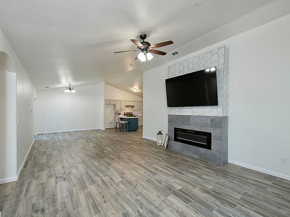 JUST LISTED! Beautiful home with modern amenities. Sleek electric fireplace with honeycomb tile accented above. Wood-style flooring in Living areas, and new carpet in Bedrooms. Stylish Kitchen with island and seating area. Primary Bedroom Suite, plus two more Bedrooms, and another full-size Bathroom. Great patio area ready for your design ideas. Large backyard for landscaping or a great vegetable garden. Come with your creativity! Major highlights: right down the street from Highway 198, Kaweah Delta Hospital, and Downtown Visalia; plus a short drive to Sequoia National Park.