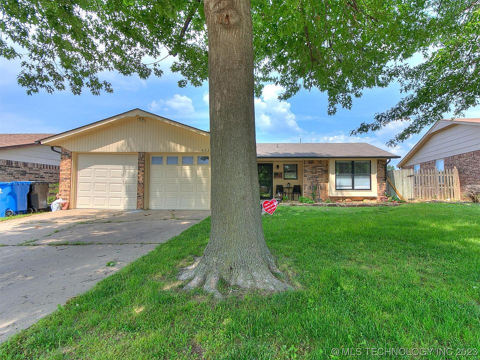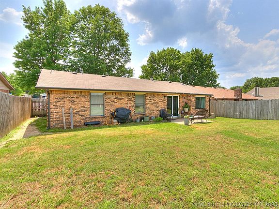 Adorable home, conveniently located in Broken Arrow. This home includes three bedrooms, bath and a half, two car garage. Living room has vaulted ceiling, new flooring, wood burning fireplace and new back door. Kitchen has new windows, sink, garbage disposal and all appliances will stay. New interior paint, bathroom faucets, full gutters with guards on exterior. Roof replaced in 2018. Home Warranty will be transferred.