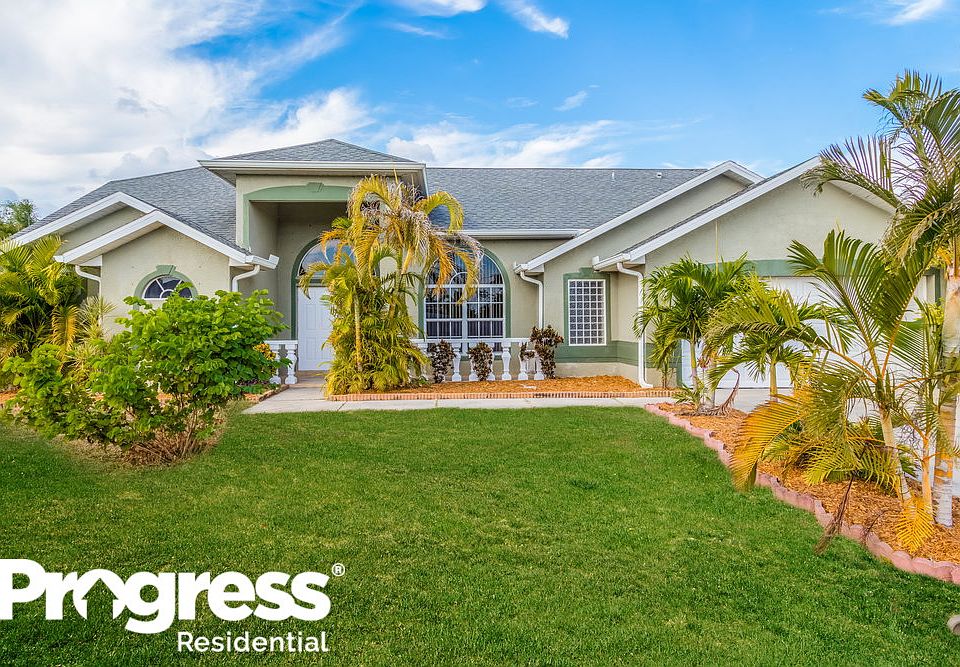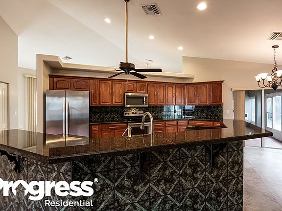 Have a busy schedule? Click the Show Yourself In button on this homes RentProgress.com listing or call (941) 202-6993 to register for a self-guided showing at a time that works best for you. You wont believe the stunning finishes in this 4 bedroom, 2 bathroom rental home in Cape Coral, FL! The vaulted ceilings and tile floors combine to bring an airy and open feeling to the home. The eat-in kitchen boasts a breakfast bar/island, a dining area and granite countertops. Down the hall, youll find four bedrooms, including the stunning master bedroom, which offers a private bath with a gorgeous vanity with dual sinks, a garden tub and a walk-in shower. You will love entertaining on the screened patio beside the lawn in the backyard. Reserve your tour online today! Note: The listed amenities may not be accurate. Please consult with a Progress Residential leasing agent to confirm the property will meet your individual needs.