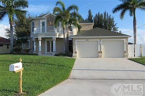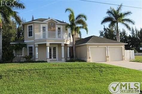WOW Look at this 2-Story 5 bedrooms 3 1/2 baths with Home Office, plus Pool located on a fresh water canal. With 2705 SqFt of living. This home has a large, Kitchen with plenty of Cabinets & counter tops. Eat in nook that over looks the pool & the canal. Formal dinning room with french doors. The living room has high ceilings plus a fire place. The master bedroom is large and is located on the first floor. The master bath features 2 vanities,soak tub and walk in shower. There is a pool bath off the living room. The laundry rm has a wash sink and cabinets. Upstairs features 4 bedrooms and 2 full baths,one bedroom has a private full bath. There are 2 large balconies to enjoy the beautiful weather in SW Florida. The garage is over size with a roll up door for extra storage. The pool is large with a slide, and water fall. Walk out to the dock and enjoy the water view. There is also a jet ski lift that holds 2 units. The home is on a dead end street and is move in ready, a must see. Brokered And Advertised By: Marlin International Realty Listing Agent: Louis A Simonetti