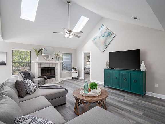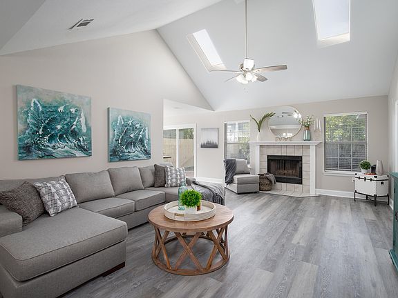 Cozy fireplaceBreakfast barPrivate bathFenced backyardSpacious primary suiteVaulted ceilingsStylish flooring