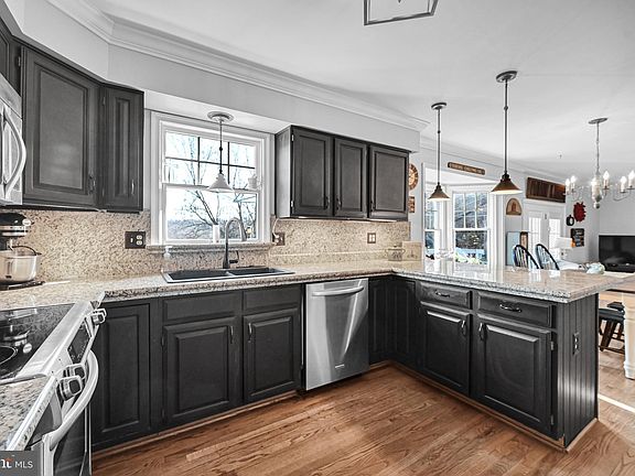 Canceled OPEN HOUSE***Sun, Mar 3 1:00 PM - 2:30 PM***Showcasing sophisticated style with casual comfort this home features a beautiful neutral color palette, generous room sizes, updated kitchen and master bath, hardwood flooring, incredible (seasonal) summer awning coved deck, and much more. The thoughtful floor plan offers formals that are well suited for classic entertaining and celebrations with crown molding and chair rail detail. Prepare decadent dinners in the kitchen appointed with black cabinetry, pendant lighting, stainless steel appliances, granite counters, granite backsplash, center island, and pantry. Enjoy casual dining in the breakfast area off the kitchen with a sliding glass door to the private deck. Spend quality time with loved ones in the family room characterized by a cozy wood-burning fireplace and streams of natural light from a wall of windows. Travel upstairs to the primary bedroom highlighting a walk-in closet and a renovated bath with design-inspired finishes, a changing area with barn doors leading to the walk-in closet , and floor-to-ceiling tiled shower with frameless glass. Three additional generously sized bedrooms with ceiling fans, and a renovated full bath with modern tile conclude the upper level. Hobbies and recreation await in the finished lower level. Additionally, the lower level provides a laundry room and storage room. Enjoy the fabulous outdoor spaces that will easily allow you to host the best outdoor gatherings as well as rest and relax after a long day with features including the covered front porch, fish pond, and sprawling landscaped backyard with a storage shed. Property Updates: roof, interior paint, new shed, sliding doors, basement flooring, landscaping, gutters and downspouts replaced, granite counters and backsplash, kitchen cabinets painted, awning by Hoffman Co. and much more.
