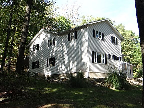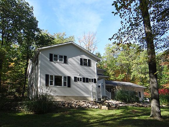 Private and Peaceful wooded setting at the end of the Lane. Large 5 BR, 3 Bath home with a 2 car garage. Features Two Master Suites (one on each floor); Hardwood floors throughout; Large Deck for outdoor living; Family room with Fireplace; Lots of Closets; Shed; and Large 1st floor Laundry with sink, countertop, and cabinets. Beautiful property in a scenic and convenient location. Out of town, but not far from everything.