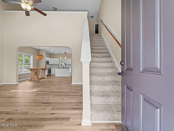Located in the highly desirable Shepherds Ridge community, this well-appointed residence offers a functional and inviting layout. The main level features a dramatic two-story family room, a spacious kitchen with center island and dedicated dining area, as well as a convenient first-floor laundry room. The primary suite is also located on the main level and includes a trey ceiling, expansive walk-in closet, dual vanities, a garden tub, and a separate shower. Upstairs, you'll find three additional bedrooms and a versatile loft space—ideal for a home office or playroom. The exterior boasts a large, fully fenced backyard with an extended patio, perfect for outdoor living and entertaining. Conveniently situated just minutes from shopping and dining, with easy access to Fort Bragg for commuters.