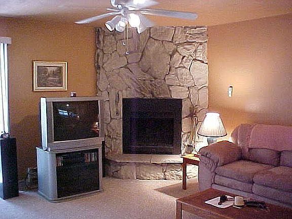 Living room has wood burning fireplace, ceiling light fan and slider to enclosed private patio with storage shed. Kitchen has been remodeled with refinished cabinets, new electric stove, and hood. Dual sinks with new Peerless faucet overlooking greenbelt. Dishwasher, disposal, Formica counter tops, ceiling light fan. Laundry in hall with shelves. Half Bath on main floor with new toilet, refinished cabinets and new countertop. Bedrooms on second floor have spacious slider door closets, ceiling light/fans and window blinds. Main Bathroom has a tub shower combo, dual sinks, linen closet, new toilet, cabinets, counter top and lights. New neutral colored Berber carpet, vinyl and laminate to compliment soft decorator colors. Popcorn ceilings have been removed. Covered carport for 2 cars.