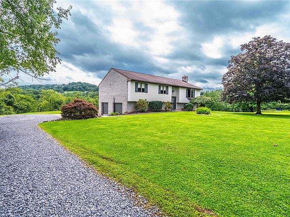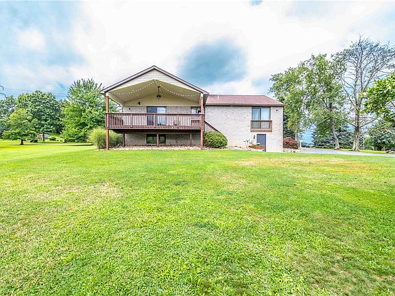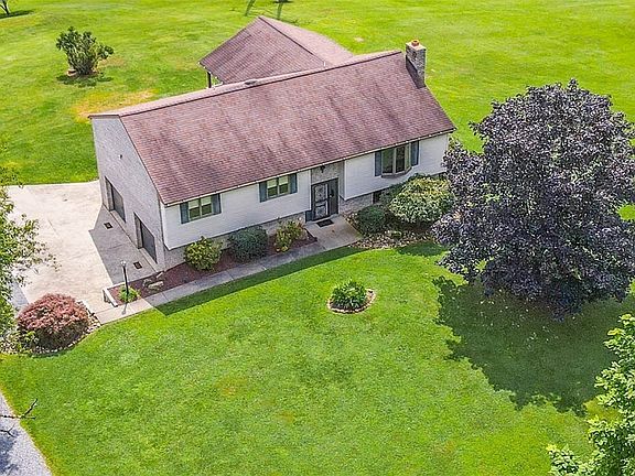 Enjoy the change of seasons and watch the sunsets from your own acre of privacy. Large split entry with open floor plan offers spacious updated kitchen with plenty of custom cabinets, solid surface counters, Pergo flooring, newer appliances, that opens to dining room with glass sliding door that opens to covered 12x24 covered deck, and flows into living room and entrance. There are 3 bedrooms on this level with a full bath off master bedroom and a main bath. The lower level has a game room with fireplace with wood burner insert. There is an extra room off the game room that could be a 4th bedroom. There is heat pump, back-up furnace and wood burning insert to keep your home cozy while controlling your utility bills. Twelve month average is . Flood lights, led lighting, oak doors throughout. Water well is still connected in garage. Attic is floored. Underground electric to home. Anderson windows, full plaster. This home was built by a contract for his family.