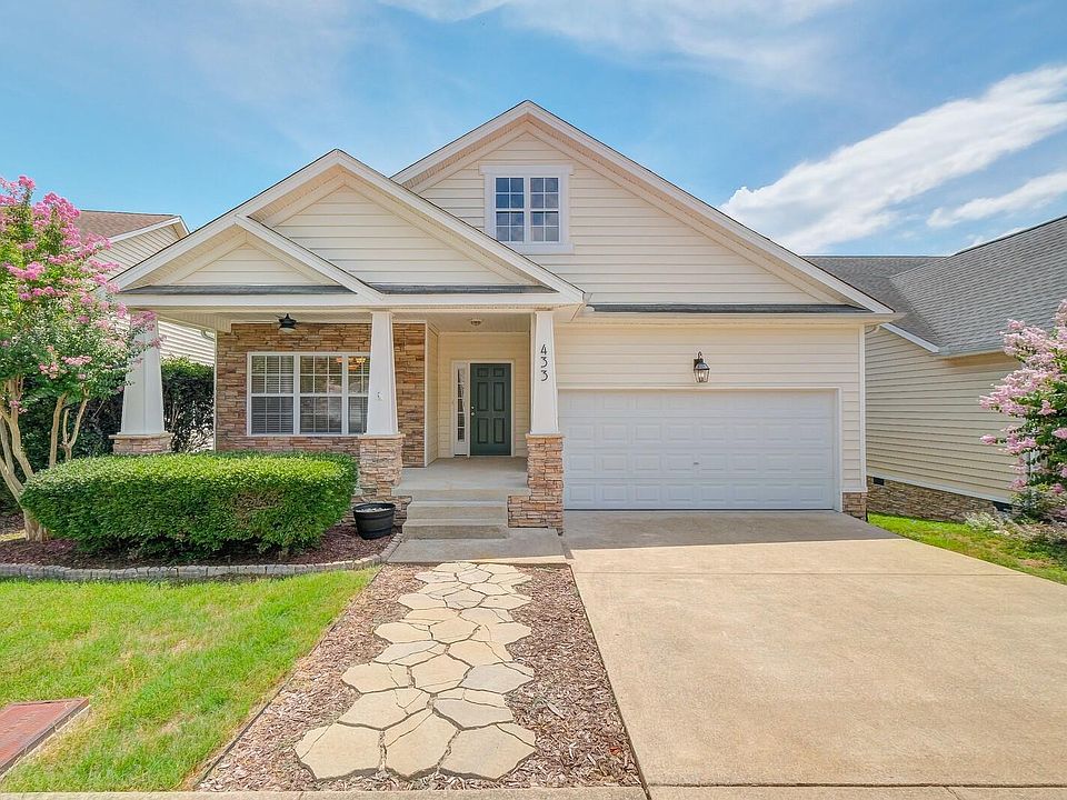 (P) Private Lake Access located in Woodland Point, this one level home offers fresh paint throughout, large covered front porch, an open kitchen and great room, formal dining room/office, arched doorways, a master bedroom separate from other 2 bedrooms, with a large master closet and a great en-suite. The backyard looks out on beautiful core property and there is a rugged path to the lake. Woodland Point is a cute sidewalk community with easy access to I-40, the airport and only 15 minutes from downtown! HVAC serviced in July 2022 and Seller offering a one year home warranty.