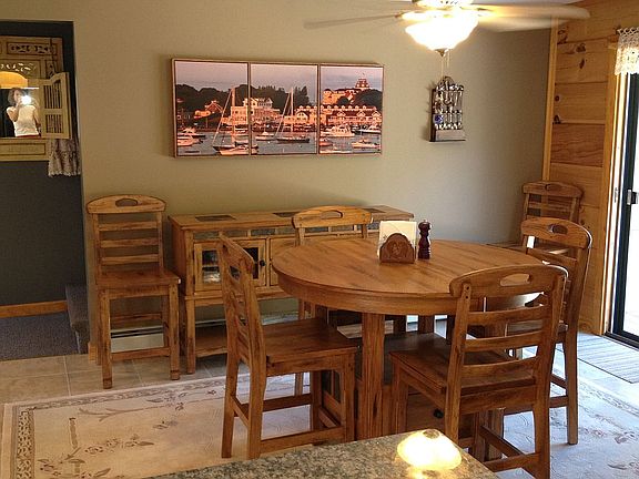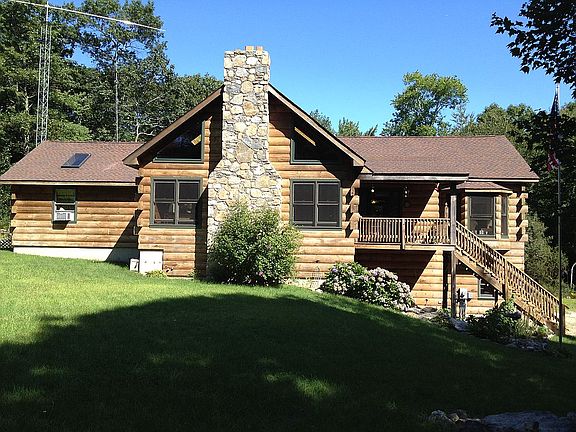 Stunning 3 spacious bedrooms, 2 corian bath log Ranch on 4+acres built in 2003. New large & open kitchen with granite, appliances & maple cabinetry with windowed breakfast nook. Great master bedroom & living room, decks off living area.Full dining room with sliders to deck. Cathedral ceiling living room with 18 foot stone fireplace is breathtaking- what entertaining & enjoying space- well you have found it here. Bonus room upstairs. Finished downstairs has a full kitchen, bedroom, full bath, main room, sliders to outside, walk out to yard and storage. Integral 2 car garage. 2500+ square feet of living space. Private grounds but minutes to shopping, golf and town. A must see!