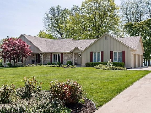 Very well loved and cared for 5 bed/4.5 bath ranch w/walk out basement in North Harbour! Grand backyard with 140' of lake frontage on the main body of Morse is perfect for hosting a family gathering or a nap in the hammock! Home features lg kitchen open to sunroom, double sided fireplace, pristine 3 car garage w/epoxy flrs, abundant storage and main flr master/office/laundry! Exterior freshly painted, new roof & newer dual HVAC! Stamped concrete patio & private dock w/lift! Noblesville Schools!
