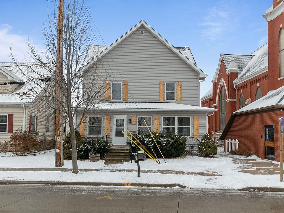 Perfectly preserved woodwork, refinished solid wood floors, modern kitchen & bathrooms! The kitchen has been thoughtfully updated with new cabinets, hardware, black stainless steel appliances, kettle faucet, smart refrigerator, and period-appropriate tile backsplash. Both bathrooms are fully renovated, unique modern feel. Preserved architectural details include original 6-panel solid wood pocket doors. 5 bedrooms with ceiling fans & LED lighting. Walk-in closets with door-activated lights. Solid wood six-panel doors. Open Attic offers potential for an additional suite or rec room. Enclosed porch for relaxation. Updated plumbing & electrical. Detached 3-car garage. Elevated location provides stunning river views. 48 hours for binding acceptance. Park on the street in front of the house.