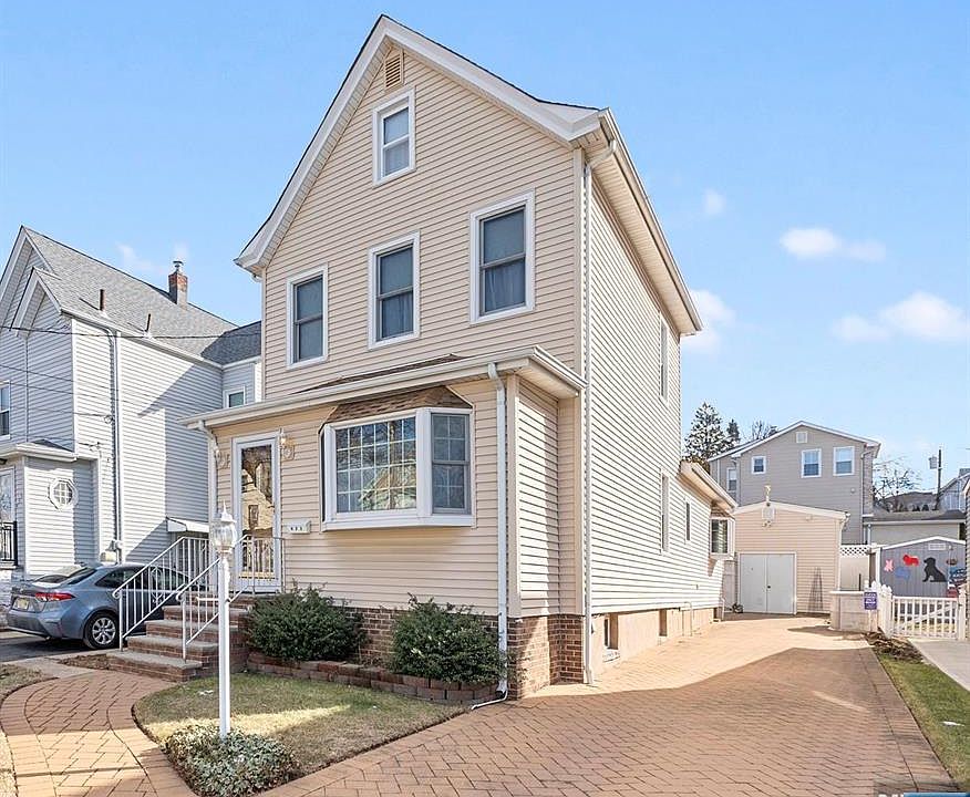 Nestled in the heart of Carlstadt, this charming 4 bedroom, 2 bath expanded colonial home offers 1,549 sq. ft. of living space. The inviting exterior features vinyl siding, a paver walkway, and a large paver driveway. Inside, enjoy a spacious living room with a bay window, a formal dining room, an unfinished basement, and a cozy family room. The large eat-in kitchen features corian countertops, a breakfast island, as well as ample cabinetry and counter space. Step outside to private deck and paver patio, perfect for entertaining. Additional highlights include central air, 200-amp service, and a large shed for extra storage. Conveniently located near schools, shopping, and dining, this home is a must-see!