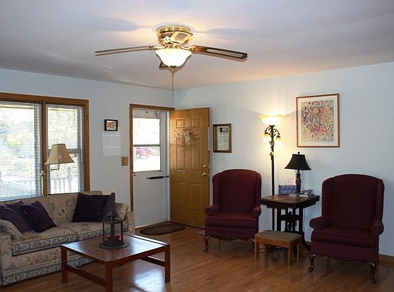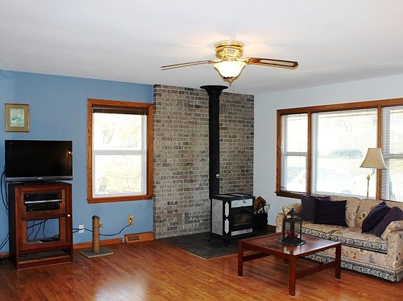 Great 3+ bedroom East side home has lg fenced in yard w/patio, fire pit, & shed. Workshop in 750 sq ft garage (parking for 2 cars tandem) is perfect for the craftsman or woman! Bright living area features wood burning soap stone Vermont stove & built in! Pergot floors throughout (w/original hard wood underneath). Kitchen w/oak cabinets, pull out pantry & bay (greenhouse) window. Main bath features Jacuzzi brand tub w/tile surround. Lg LL family rm w/tile floor, 3/4 bath, 4th n/c bedrm. Being Sold 'AS IS'.