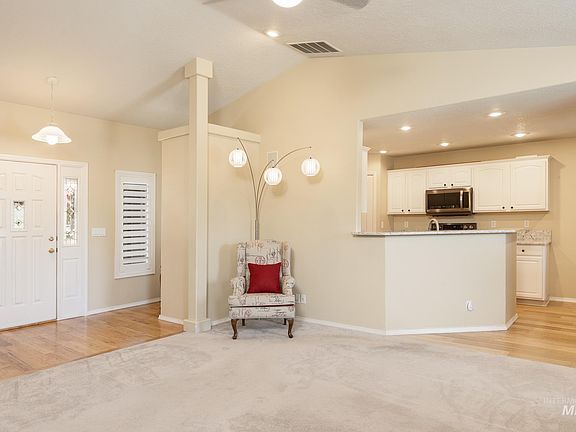 Nestled in a family-friendly neighborhood near Old Town Eagle, this adorable single-level charmer sits on almost a quarter acre. From the curb appeal to the home-sweet-home feel, the moment you step in it's quite possible you will fall in love with this light, bright and cheerful space. The updated kitchen is equipped with quartz counters, farmhouse sink, new appliances and a walk-in pantry, and is open to the spacious living room with vaulted ceilings, new shutters and fireplace. The formal dining room connects to the kitchen. Primary Bedroom has ensuite bath with soaking tub, step-in shower and walk-in closet. Two guest rooms on the other side of the house share the 2nd full bath. Breath easy with the Whole House Air Treatment System. The covered back patio is the place to relax and enjoy your large and private backyard. Plenty of room for a pool, garden, shed, or whatever landscape you desire. This home epitomizes the term ‘move in ready’! Welcome Home :)