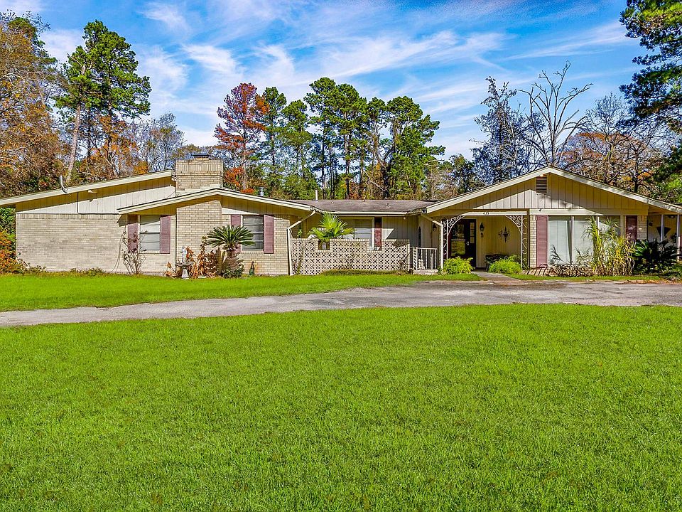 Located in Corrigan’s Laurelia Estates, this brick home sits on six lots totaling approximately 2.8 acres. The home features a large den with a true wood-burning fireplace and several additional rooms that provide flexibility in use, including spaces previously used as a music room, sun room, art room, and office. Original artwork from the original owner remains throughout the home, adding character and a sense of history to the space. Outside, the property includes established landscaping, a circular driveway, decks, and a screened room currently used as a “coffee house” for enjoying the outdoors. A carport with an attached workshop or tool storage area adds functionality. Mature trees and open space provide privacy within an established subdivision.