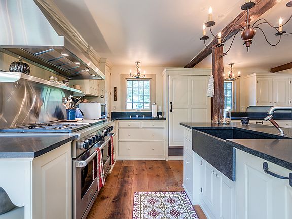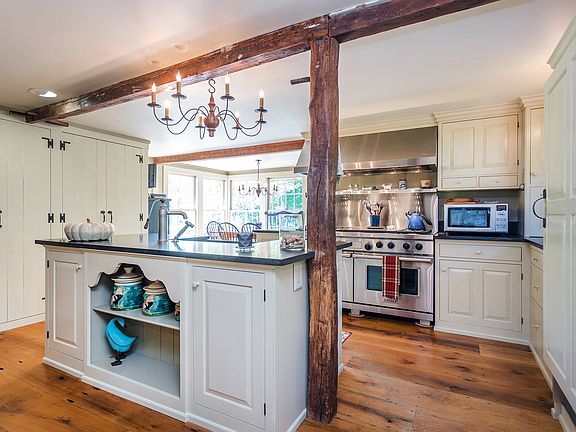 This is a storybook home in a story book setting! This lovely antique once owned by landscape artist William Merritt Post, has been lovingly restored and is set on 12.5 acres right out of a Currier & Ives painting. The land is lovely with mature plantings, many perennial gardens as well as irrigated raised bed vegetable gardens. Half of the property is flat with fenced in fields. There is a detached barn/garage with 5 stalls. The rest of the land gently slopes in the back and extends just beyond the Bantam River. The home is stunning and in Move In condition. A lovely eat in kitchen has all a chef could want. It includes a 60" Wolf stove with double ovens, sub zero refrigerator as well as 2 additional refrigerator drawers and 2 additional freezer drawers. There is a center island, a wine cooler, Bosch dishwasher and soap stone counter tops. The breakfast nook is surrounded by windows with beautiful light streaming in. The woodworking in the home is exceptional. The dining room has a gas fireplace, there are also wood burning fireplaces in the library and living room. There are wide board oak floors in most rooms on both levels. There is a main floor bedroom and a full bath on the main level for those guests who can notmaneuver stairs. The upper level has a lovely master suite with luxurious master bath with soaking tub and large shower. There are 3 additional bedrooms on the upper level and another full bath. Your quintessential New England Country Home!