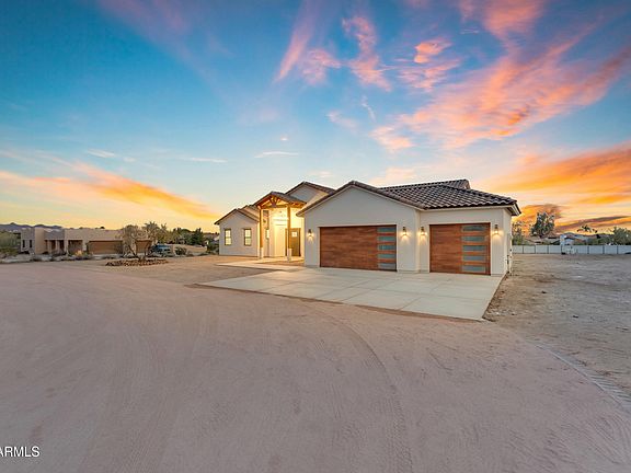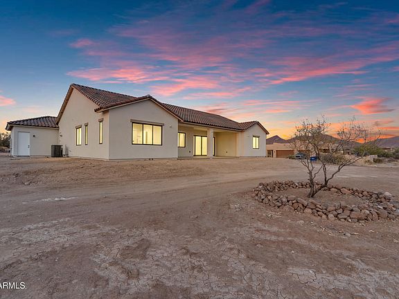 Located in the coveted Desert Hills community, this stunning home perfectly balances luxury and comfort. Featuring four spacious bedrooms, a dedicated office, three full bathrooms, and an additional powder room, this residence is designed to cater to all your needs. Both the mother-in-law suite and the primary suite come with private bathrooms, ensuring ultimate privacy and convenience. The heart of the home feels like a gourmet kitchen, equipped with premium Wolf and Subzero appliances, ideal for any culinary enthusiast. The open floor plan seamlessly connects the living and dining areas, making it perfect for entertaining guests. The oversized garage is a highlight, easily accommodating two full-sized pickup trucks. Set on over an acre of land, this property offers ample space for horses and the potential to add additional structures like a casita or workshop. Relish the tranquility of your surroundings with plenty of room to create your dream outdoor retreat, whether it be a lush garden, a sparkling pool, or a spacious patio. The builder is installing a block wall to enclose the entire backyard, allowing you to enjoy the mountain views in complete privacy. This home offers more than just a place to live; it offers a lifestyle. Experience the luxury and serenity of Desert Hillsyour dream home awaits!