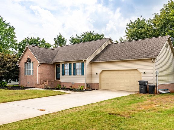 Updated 3/2 brick rancher on .66 acres of a level lot. BRAND NEW HVAC AND DUCTWORK, Cathedral ceilings, built ins, fireplace, shiplap, loads of natural light, large closets and pantry, oversized garage, and full unfinished basement with third garage. Eat in kitchen with bar and breakfast area as well as a dining room that could be used for office, playroom, etc. Fenced back yard with private deck and mature trees. Beautiful mountain views, county only taxes, NO HOA, and 100% financing available. An apple tree in the front yard, just to top it off! Schedule your showing now!